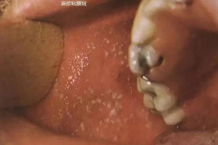 麻疹口腔黏膜柯氏斑归于麻疹前期的特异性体征,可在颊黏膜上呈现沙砾巨细的灰白色小点,该病是由麻疹病毒感染然后引起的感染性疾病。 麻疹口腔黏膜柯氏斑又称口腔麻疹黏膜斑,是麻疹前期的特异性体征,常在出疹前1-2天呈现。开始时见于上下磨牙所对应颊黏膜处,皮损为沙砾巨细的灰白色小点,周围有红晕,常在1-2天内敏捷增多,可累及整个颊黏膜并蔓延至唇黏膜,于出疹后逐步消失,可留有暗红色小点。 麻疹口腔黏膜柯氏斑是麻疹前期的特异性体征,麻疹是由麻疹病毒引起的感染性疾病。麻疹患者是仅有的感染源,可通过呼吸道进行传达,与患者密切触摸或非直接触摸患者的鼻咽分泌物亦可传达。 麻疹口腔黏膜柯氏斑没有特异性医治办法,主要为对症医治、加强护理和防备并发症。发病时应留意卧床歇息,坚持室内恰当的温度、湿度和空气流通,防止强光影响。高热时可酌情运用退热剂医治,但应防止急骤退热。若存在继发细菌感染可给予以抗生素医治。